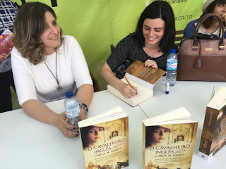 Eramos várias e, porque as conversas são como as cerejas e a falar de livros o tempo voa, acabamos por estar mais de uma hora em redor de uma mesa. Se me perguntarem o que foi dito... pois, não sei. Sei que falamos dos livros à nossa frente, A Filha do Barão, da Célia, e O Cavalheiro Inglês, o meu, e dos que ainda hão de vir... o da Célia, Uma Mulher Respeitável, tem previsão de saída, o meu, oO Ano da Dançarina, há que terminá-lo primeiro e depois ver o que diz a editora! Falamos também de coisas soltas, de hábitos de escrita e do que representa para nós, de pesquisa e método...